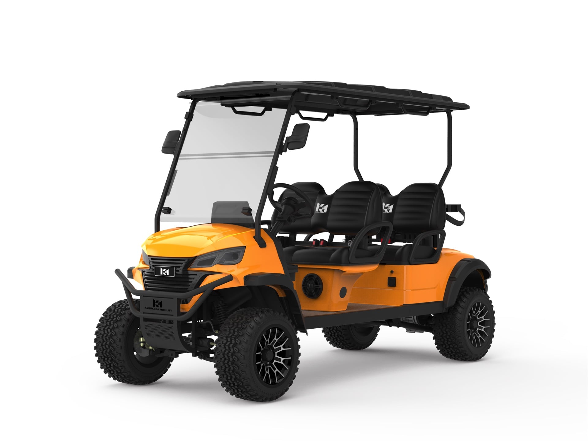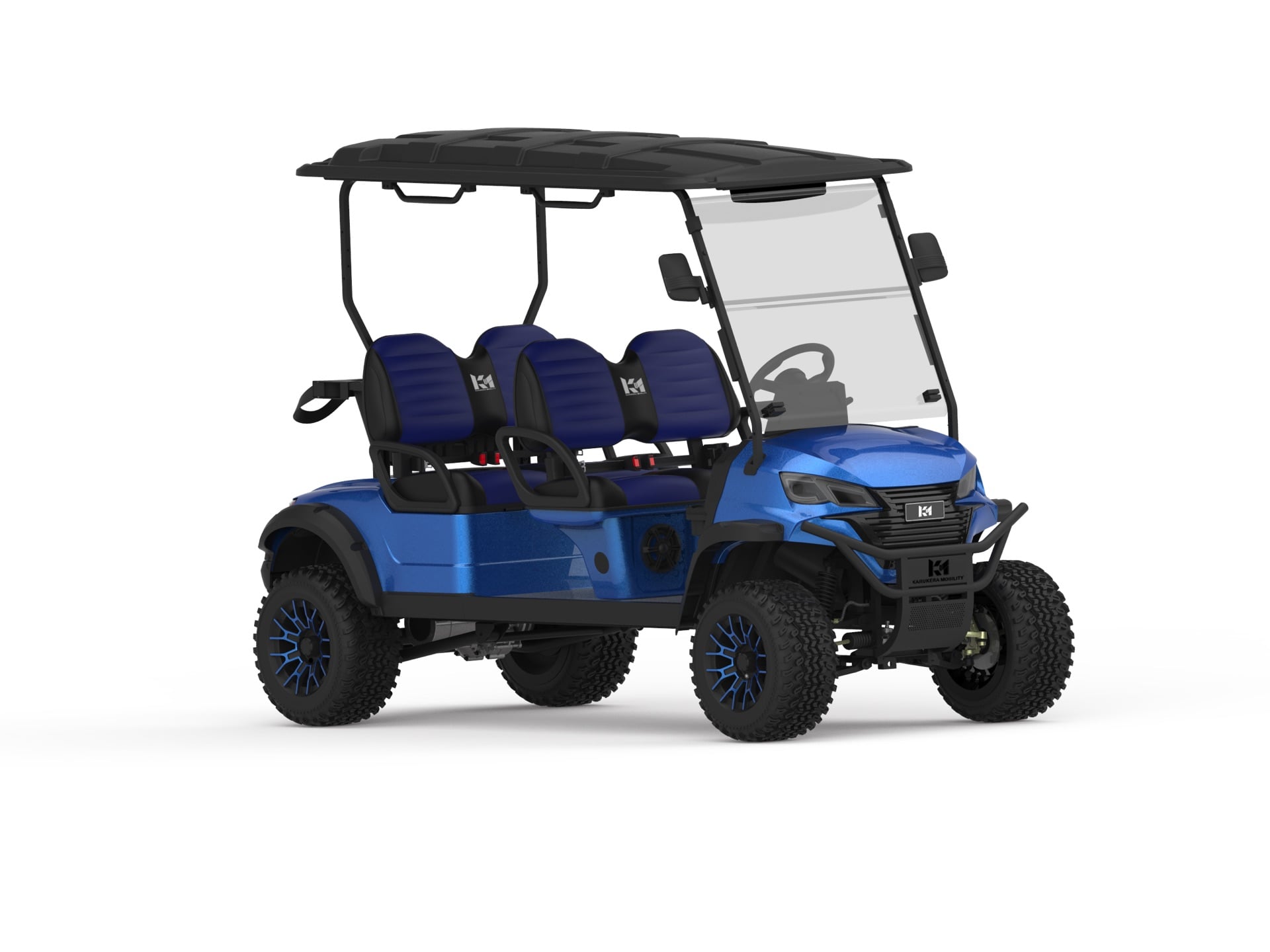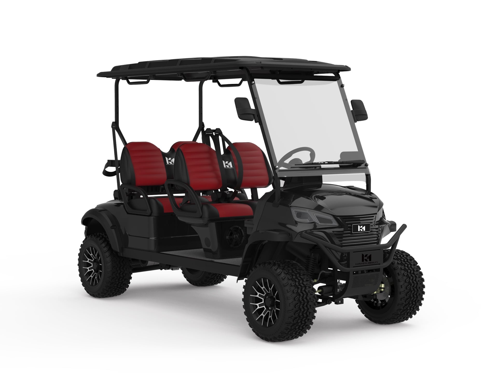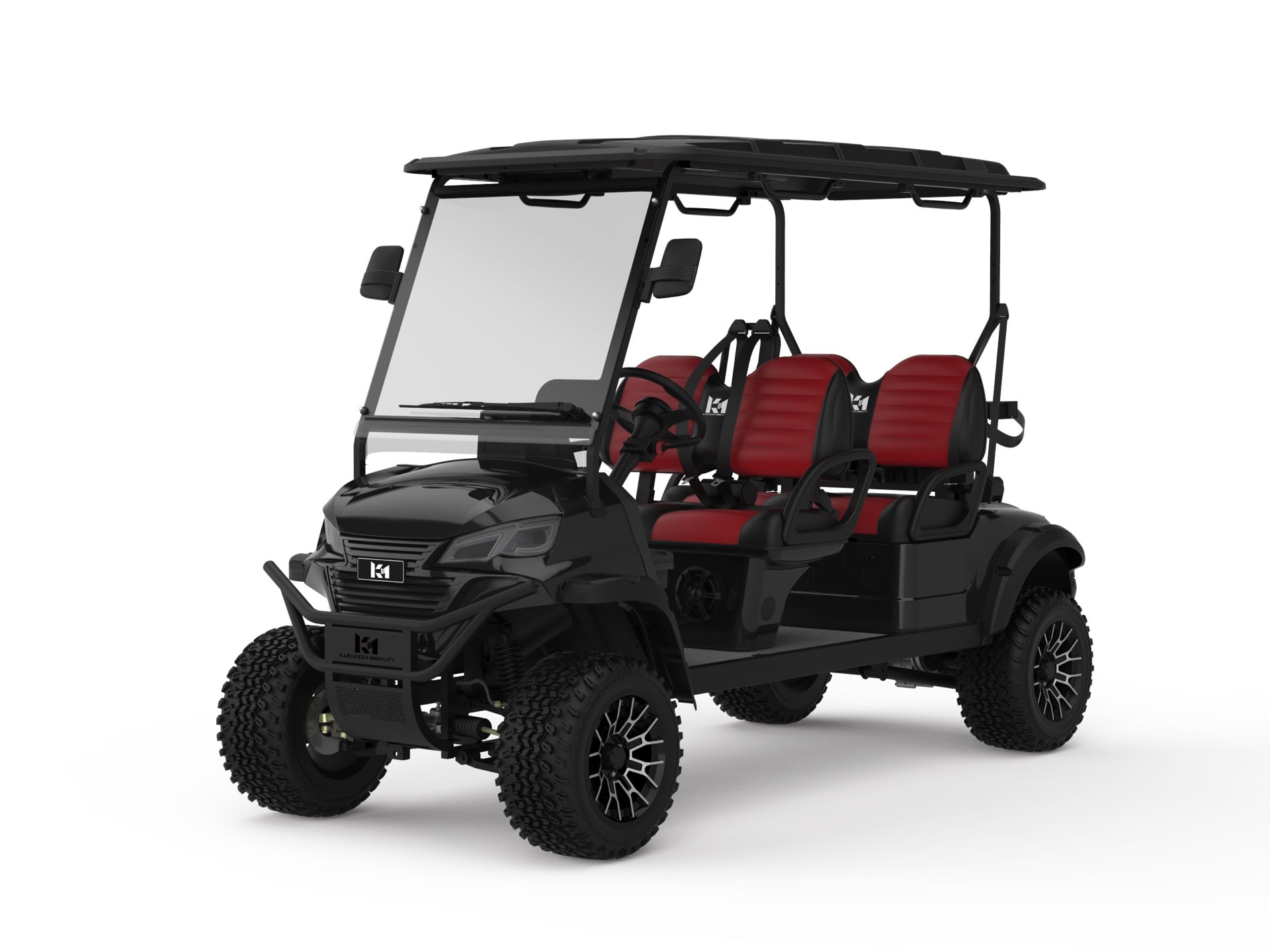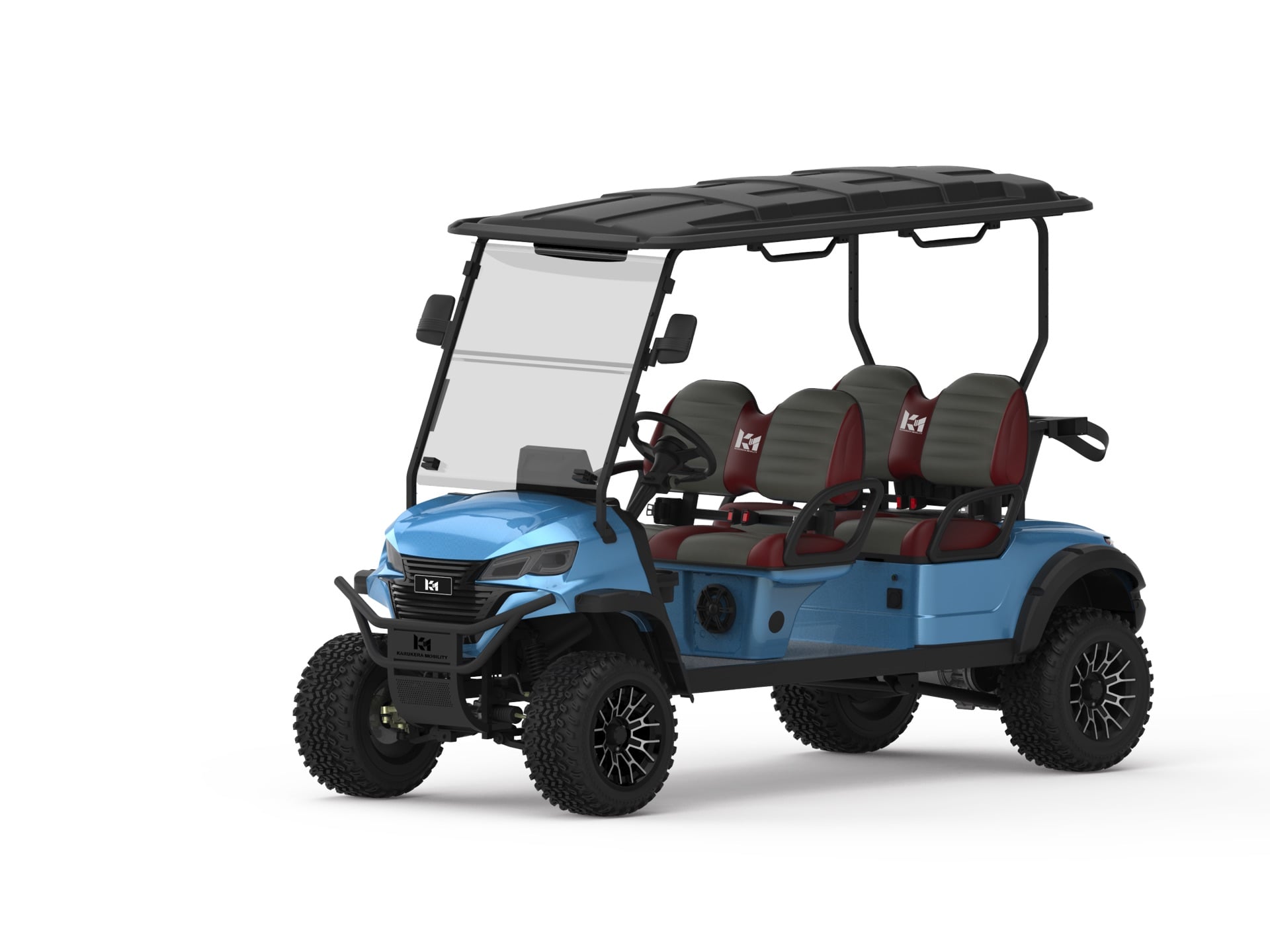 Quadricycle électrique robuste, équipé d’un châssis rehaussé et de pneus tout-terrain, conçu pour affronter tous types de chemins, même les plus accidentés.